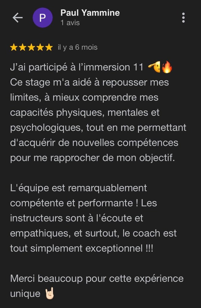 Alors n'attends plus et réserves une session stratégique avec moi pour en savoir plus et avoir une chance de participer à ce stage exceptionnel et ainsi pouvoir rencontrer toutes ces personnes des Forces Spéciales et révéler ton potentiel.